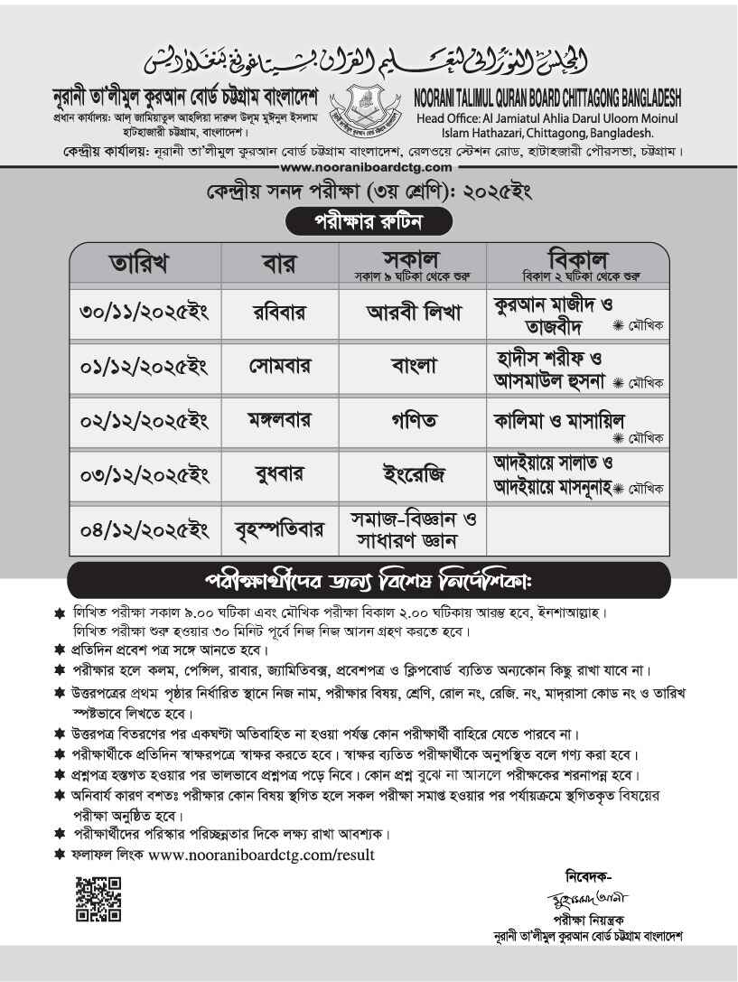 পরীক্ষার রুটিন যথাসময়ে প্রদান করা হবে।